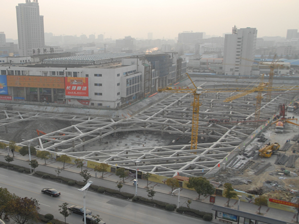 大觀?天地MALL位于南京市熱河路東側,著名歷史文物靜海寺的西側,地上為2~6層購物中心,地下兩層,局部為三層,基坑開挖深度11.8~14.8米,基坑長約305米,寬82~121米,開挖面積約2.78萬平方米。基坑西側距離熱河路最近處12米,北側距離建寧路最近處僅9米,路下管網密集;東側距離靜海寺、天妃宮最近處僅3米,周圍環境相當復雜,且場地土質軟弱,基坑安全等級為一級。