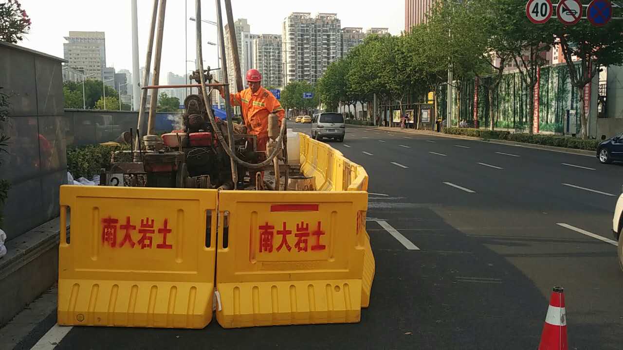 2017年5月中旬,隨著身著南大巖土字樣工作服的技術(shù)及施工人員在漢中門大街與江東路交叉口進行施工圍擋,標志著南京地鐵九號線D9-XK02標地質(zhì)勘察初勘施工正式啟動。本標段南起漢中門大街,沿江東路向北至定淮門大街止,分為三站三區(qū)間,全長約2.8km,初勘計劃工期2個月。