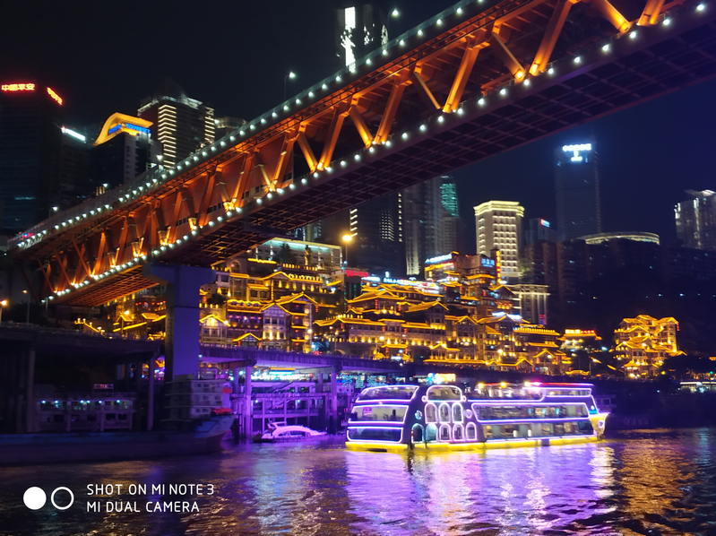 如果說北京,上海的夜景是一種“大氣“,那么重慶的夜景側是種“感動”!“兩江游”是一個巧妙地將重慶的山水與聞名天下的重慶夜景相結合而成為城市名片;是一個讓外界直觀、立體、動態、全方位、近距離、了解認識重慶、展示魅力重慶的最佳窗口,乘游船夜游兩江,猶如在星河中暢游,兩岸燈火通明,星月華燈倒影水中,江水悠悠,江風輕拂,清茶淡酒,一洗世間煩惱。云流影清,流光溢彩,火樹銀花,萬家燈火,天河群星,交相輝映…當重慶夜幕降臨所有形容世間溫暖的所有讓人感激生命的詞都成了它的描述!
