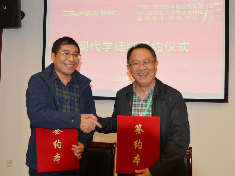 10月24日上午10:00,南京南大巖土工程技術有限公司與建設廳直屬江蘇城鄉建設職業學院在學院迎賓樓舉行了校企合作簽約儀式。出席本次簽約儀式的有南京南大巖土工程技術有限公司總經理李俊才,副總工程師董志高,人事主管楊芳,江蘇城鄉建設職業學院黨委書記孫曉文、校長黃志良、土木工程學院院長楊建華及其他2家企業代表共14人。下午,公司總經理李俊才針對測繪專業學生進行了企業宣講,并與學生們進行了溝通,學生們也表達了自己的實習意愿。