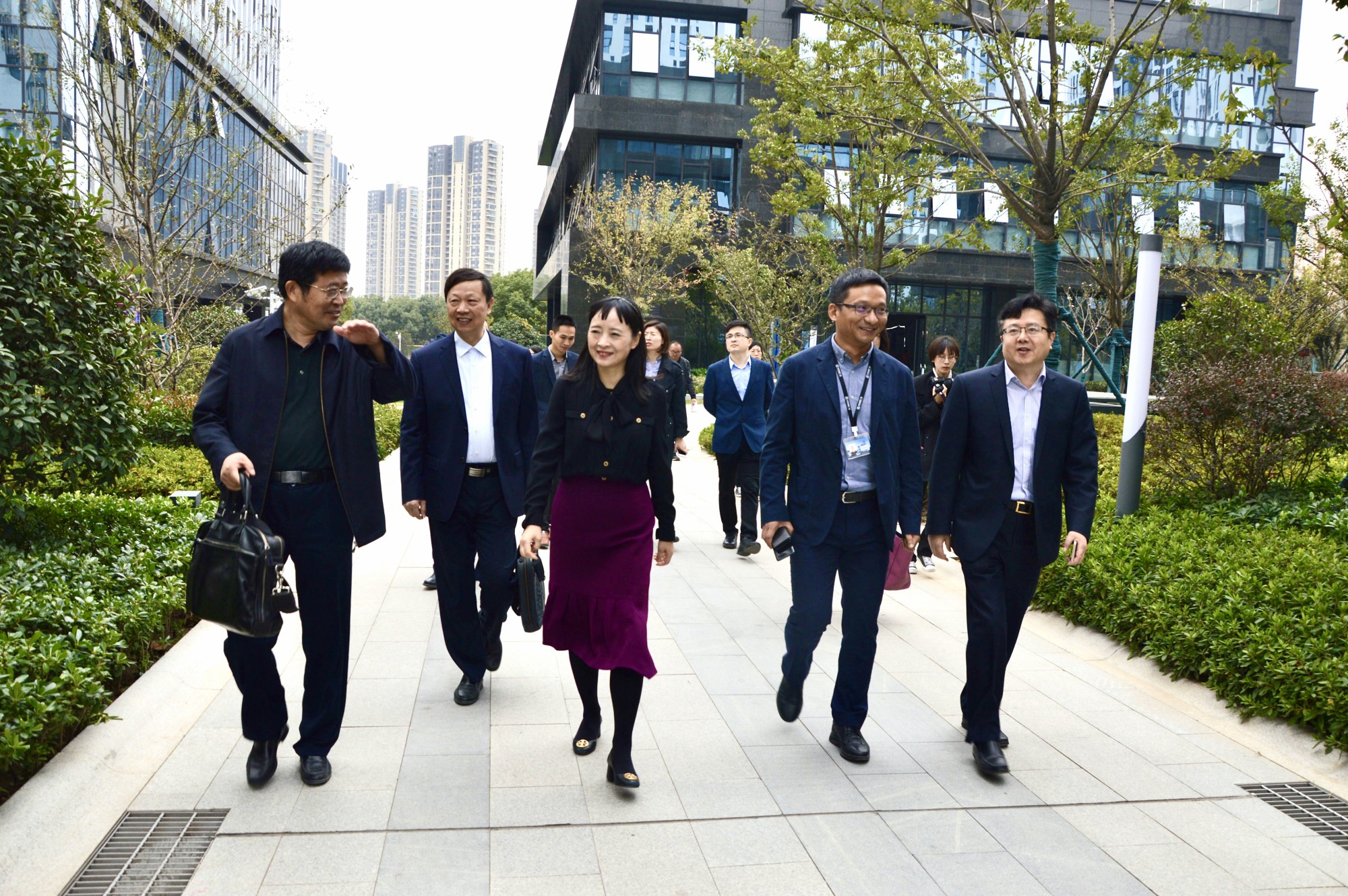 11月12日上午,新區管委會副主任陳潺嵋來到中科創新廣場調研。陳潺嵋一行人參觀了中科創新廣場展廳,實地查看了中科創新廣場建設情況,聽取了園區建設運營情況匯報。在隨后的座談會上,入駐園區的企業如南京南大巖土工程技術有限公司、江蘇教育報社、富士康(南京)軟件公司等公司匯報了企業發展情況,提出了企業目前面臨的問題,新區相關部門現場討論解決方案,為企業解決相關問題。陳潺嵋在會上提到,新區四年來高質量高速度發展,得益于眾多落地的優秀企業。目前新區發展聚焦主導產業及“兩城一中心”建設,重點產業發展速度快,發展要求既要速度,更重質量,打造創新生態,讓優秀企業落地。園區要圍繞創新建立公共基礎服務平臺,積極融入研創園板塊,提升園區品質,細化企業需求,提供好配套服務,做好自身宣傳,擴大影響力。