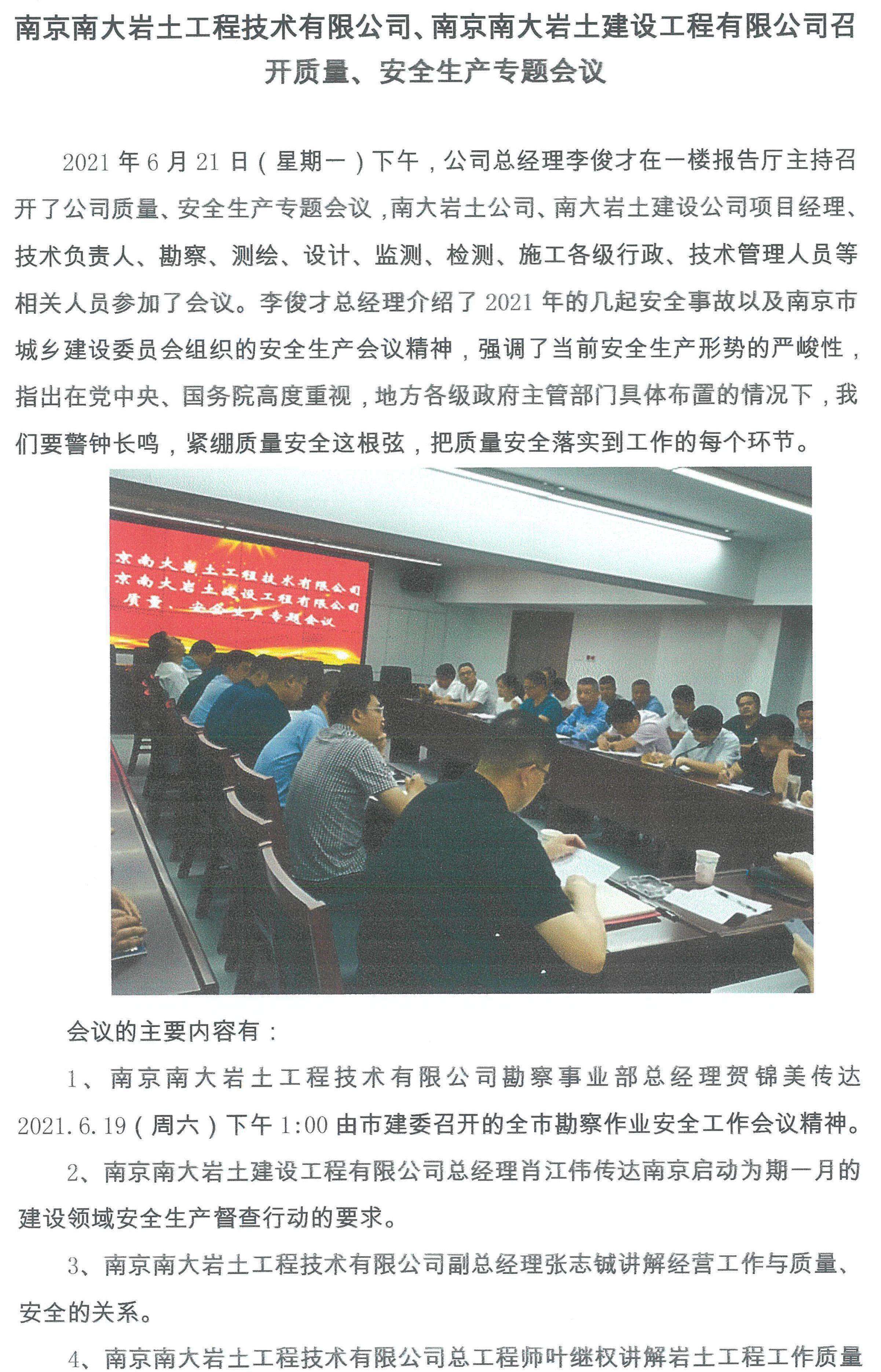 南大巖土、南大建設召開質量、安全生產專題會會議